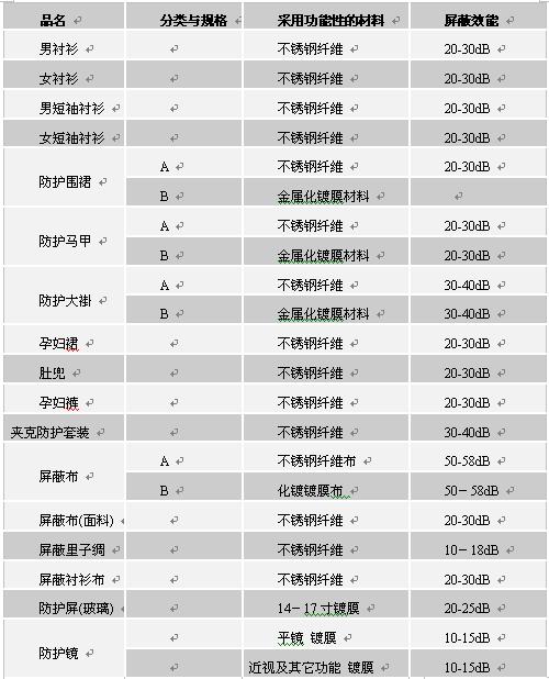 3 常用電磁輻射個(gè)體防護(hù)產(chǎn)品